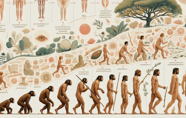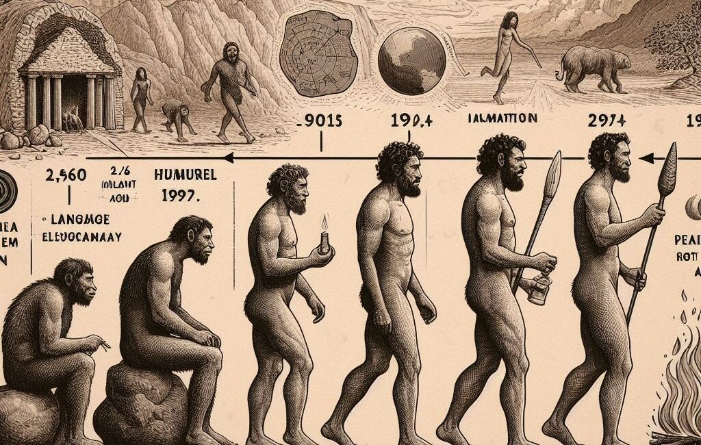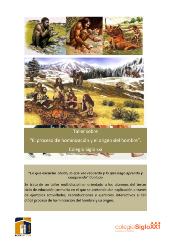 Se muestran los grandes tipos de homininos, en morfología y estructura, así como sus hábitats, morfologías, alimentación, instrumentos, cultura y, cuando las hubiera, costumbres de caza manifestaciones de espiritualidad, música, producción de útiles y de objetos de culto, decorativos y ceremoniales.